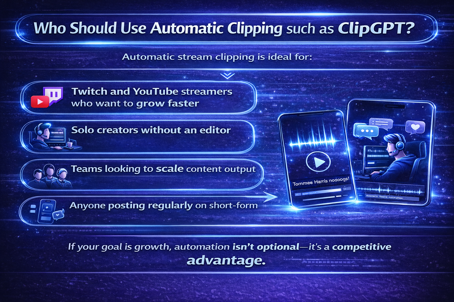 Live streaming is one of the most powerful ways to build an audience—but the real growth often happens after the stream ends. Short-form clips on TikTok, YouTube Shorts, and Instagram Reels are what keep your content discoverable. The problem? Manually finding highlights and editing clips can take hours. That’s where automatic stream clipping comes in.