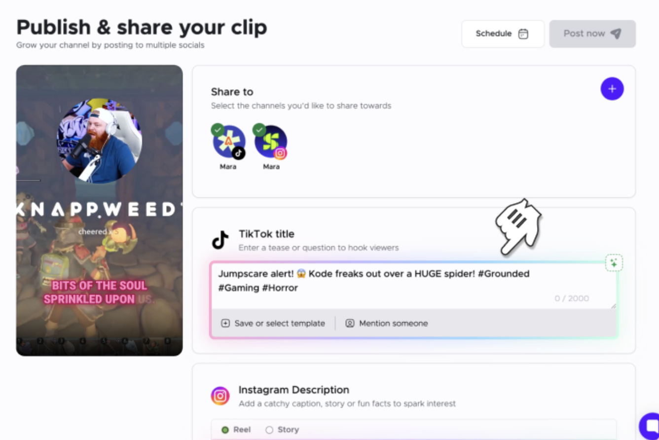 A way to schedule and publish their clips across TikTok, Instagram, and YouTube? All at once?